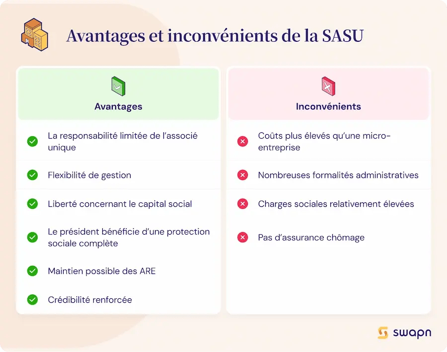 | Avantages de la SASU | Inconvénients de la SASU |